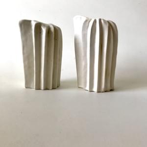 The bio-morphic objects I create are initially carved from disposable materials such as foam and cardboard, then translated into ceramic. Something is gained in this translation; somehow more than the evidence of my process, such as the hope and joy that difference can offer.My process highlights the texture of the foam and cardboard and often exaggerates imperfection. I am attracted to flaws and vulnerabilities. The objects have an unusual beauty — what I imagine to be some sort of living organism from a planet far away.